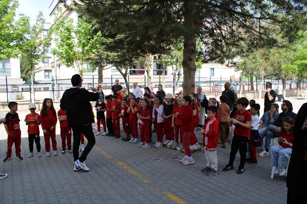 Ailemle Eğitim Yolculuğum Projesi; ailelerin eğitim süreçlerine etkin katılımını sağlayarak öğrencilerin akademik başarılarını artırmayı, sosyal becerilerini geliştirmeyi ve eğitim ortamlarını zenginleştirmeyi amaçlamaktadır. İlkokul ebeveynlerin çocukları ve çocuklarının eğitim süreçleriyle daha derin bağlar kurmalarını; çocuklarıyla kaliteli zaman geçirmelerini sağlayarak sosyal etkileşimi artırmayı hedeflemektedir. Proje ile Temel Eğitim Genel Müdürlüğüne bağlı okullarda öğretim programlarının yanında sosyal, kültürel, sanatsal ve sportif alanlarda da öğrencilerin gelişimini desteklemek için okul-aile ilişkisini güçlendirmeye yönelik bir yapı sunulmaktadır. Bu nedenle okulumuzda da “Ailemle Spor Yapıyorum “ etkinliği 2/A ve 2/D sınıflarının ve velilerinin katılımıyla gerçekleşmiştir.