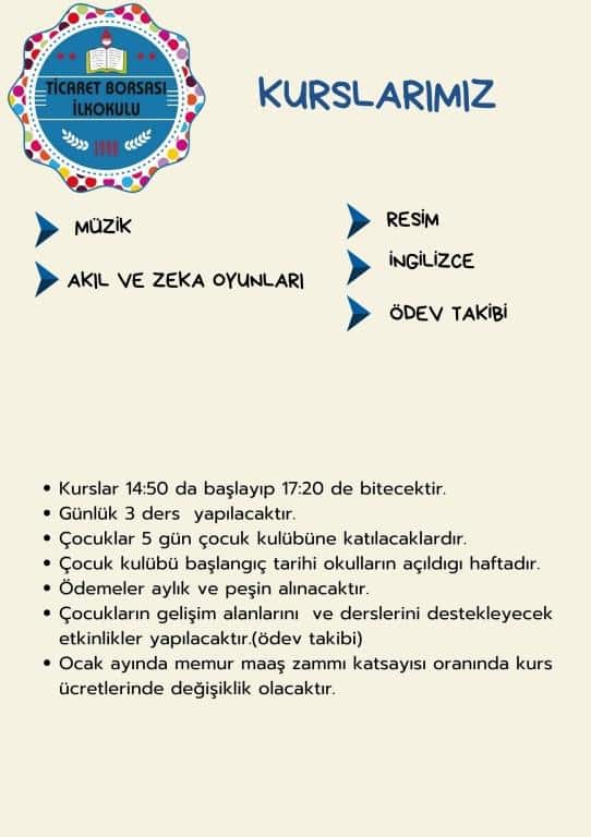 · Kurslar 14:50 da başlayıp 17:20 de bitecektir.
